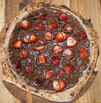 Delicious pizza topped with creamy Nutella and fresh strawberries.