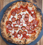 Tomato sauce, mozzarella, Pepperoni and extra virgin olive oil.