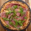 Tomato sauce, prosciutto, pecorino, fresh rocket, mozzarella and extra virgin olive oil.