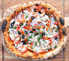 Tomato sauce, mozzarella,capsicum, mushrooms, onion, black olives, oregano and extra virgin olive oil.